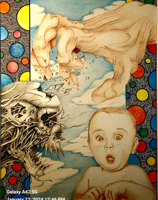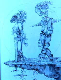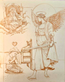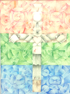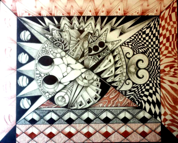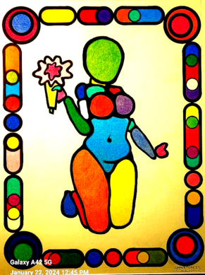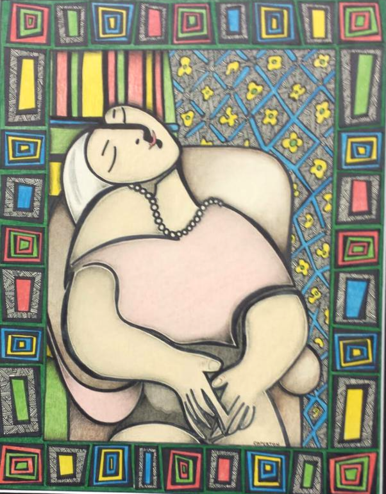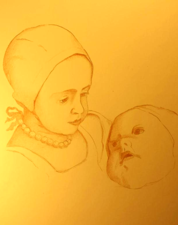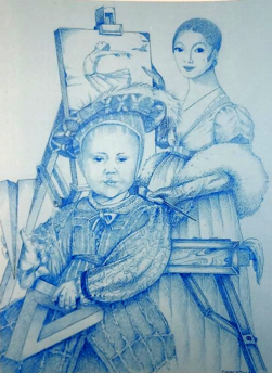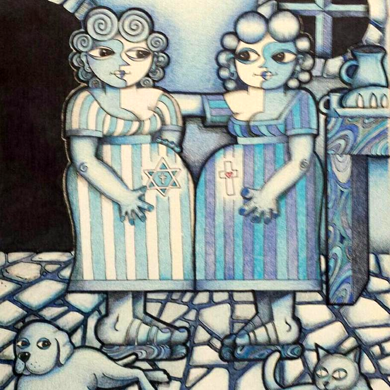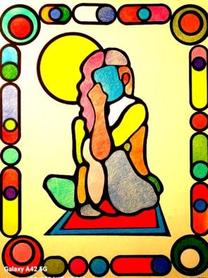 This is my imitation of a Picasso. I wanted to draw the moment in the Bible where virgin Mary met Elizabeth the first time and both were pregnant! So I drew the Star of David to represent the Old Covenant. Mary has the Cross representing the New Covenant.