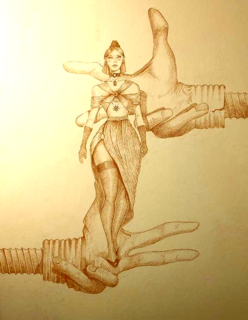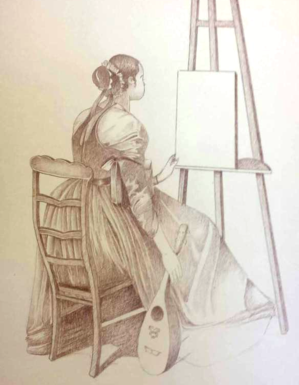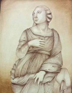 This is actually a painting by the great artist Ingres. I drew this in the exact way the painting is except for one exceptiomn, I made an extension to the back of her hair. Just a bit...