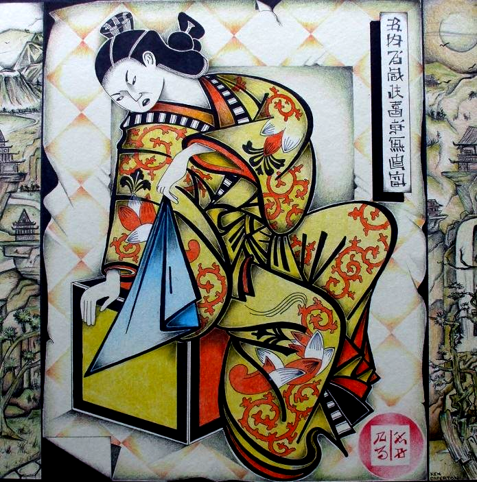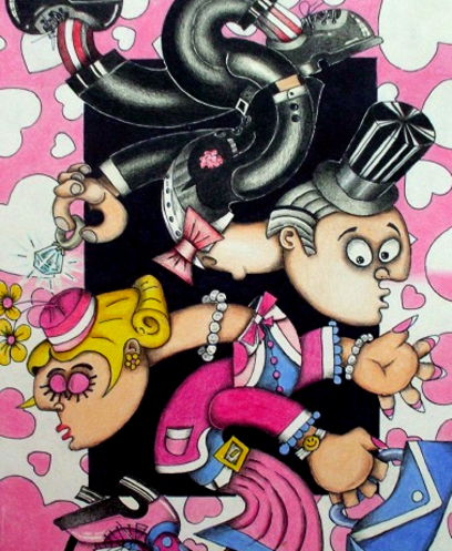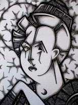 Picasso in his later years was painting subjects who were fairly "thick" in body composure. So this was my motive to mimic Pablo's later works. You might enjoy knowing that the face on both ladies is looking not only facing you, but the faces also sports a side view facing each other.
