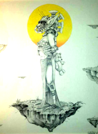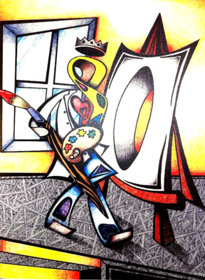 Since I believe God is a single entity not compared to anyone. I wanted to create one not exactly like Mr. Connetts but in my own format. I kept the concept and it has proved to be worth my effort. I drew the Blue Man first and I didn't like it. But it did sell... Then came the Red Nan. After the Green Man I made another Green Man.(not shown)