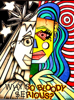 During the covid era, I came up with the idea of drawing a few Piccassos to surmise the boredom. In each picture I did a little something to compliment and blend into his abstracts without ruining his original painting. The "Why so Serious" picture is the only drawing I've done where I added words. It's a tabu of sorts in the art world not to add letters or numbers to a painting or drawing.. I got the title from the Joker in the Batman movie. It seemed to rhyme well at the time.