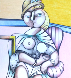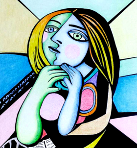 Every Picasso represented here is to a tee exactly like his originals. Except in each of them I added my own little touch of artistic magic. For example "The Woman asleep in a Chair" Shes like the painting . I added the background