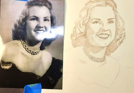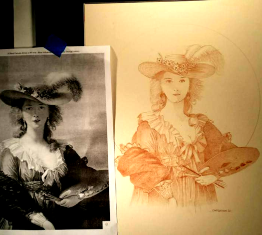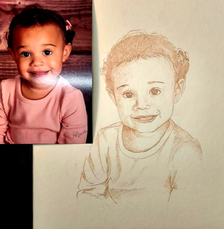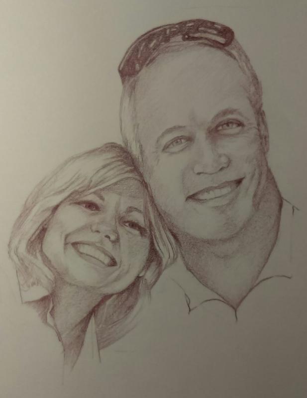 I do reasonable portraits. This page contains former portraits I've done. I charge $100.00 per person. They come to you 13x18 image size with a 16x20 outer perimeter. It will be matted in black with a clear protective sleeve to protect it. I do all my portraits in the colorof light brown. I find it looks so much better.