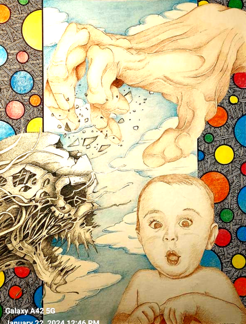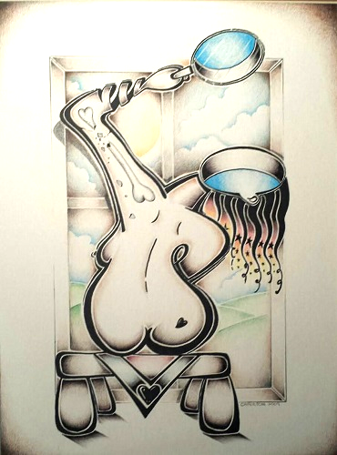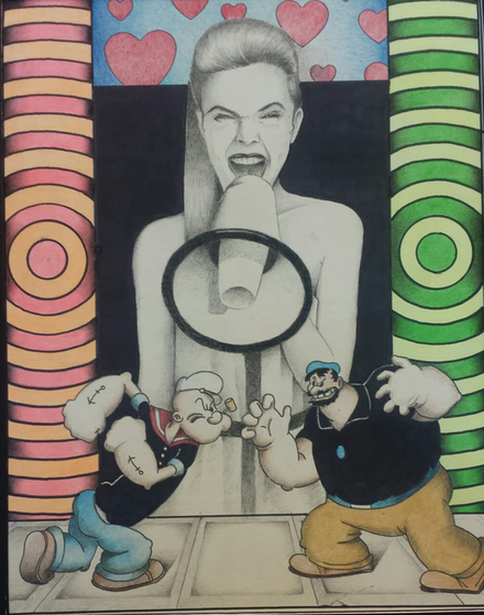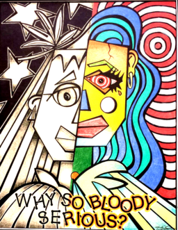 The biggest question I get is, "Where do you come up with this stuff? or even better; when I'm at a show or venue and people can clearly see I'm at my tripod artist desk, drawing.... People will look directly to my drawing then look back at me and will ask me, "Hey, did you draw that?" or "Did you do drugs in your past?!" or "Do you hate women?" (women seem to always ask that question alot) The latter I understand, but Im sitting there with pencil in hand and they still wonder and ask to this day the same thimgs!